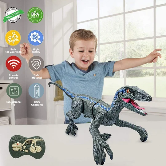 ??Remote-controlled dinosaur brought the real Jurassic dinosaur Velociraptor to life with walking movements. this remote-controlled dinosaur has 3D eyes that mimic the real eyes of a dinosaur, as well as walking, growling, swinging its body and tail from side to side, and imitating a real dinosaur.??